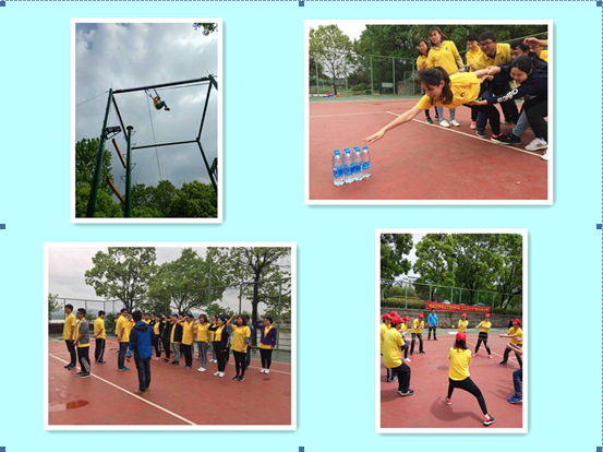 為期一天的拓展訓練內容包括“破冰起航”、“群龍取水”、“鼓動(dòng)人心”、“智力電網(wǎng)”、“高空跳桿”等活動(dòng)項目。在“群龍取水”比賽中,大家默契十足,合作精神展現的淋漓盡致,通過(guò)隊友的幫助,沖過(guò)重重阻礙,終于成功取水,比賽緊張,扣人心弦;在“鼓動(dòng)人心”比賽中,隊員們統一步調,不斷嘗試、不斷總結、不斷進(jìn)步,團隊合作精神貫穿始終;在“智力電網(wǎng)”比賽中,為了集體榮譽(yù),大家精確計算,合理謀劃,所有隊員不怕臟不怕累,都以十足的拼搏精神全力以赴,活動(dòng)場(chǎng)上口號聲、歡呼聲、吶喊聲、掌聲交織成一片;在“高空抓桿”比賽中,隊員們以最大的努力克服心里障礙、發(fā)掘自身潛力,冷靜面對、挑戰自我,深刻體會(huì )了團隊協(xié)作、信任互助和自信的重要性,承受住壓力,戰勝了困難,用汗水書(shū)寫(xiě)了弘揚五四的華彩樂(lè )章。