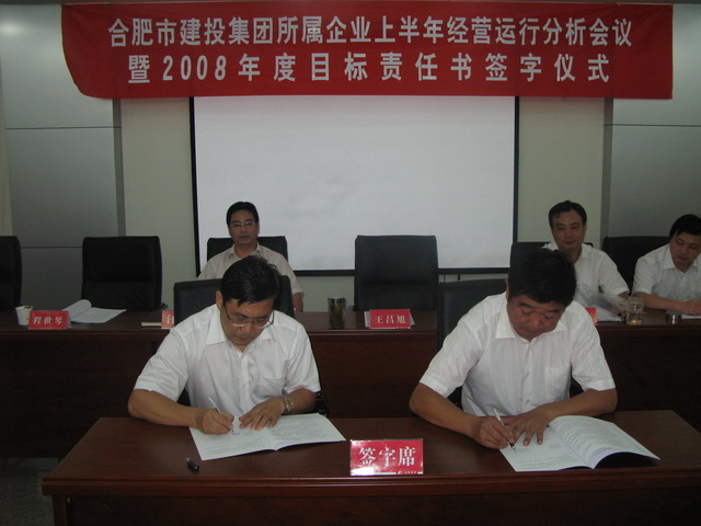 隨后,集團公司副總經(jīng)理王昌旭代表集團公司分別與國路高速、工程監測中心、市政設計院、建筑設計院、勘察院、通卡公司、綠泉園林和國際花卉八家企業(yè)簽訂2008年度目標責任書(shū)。