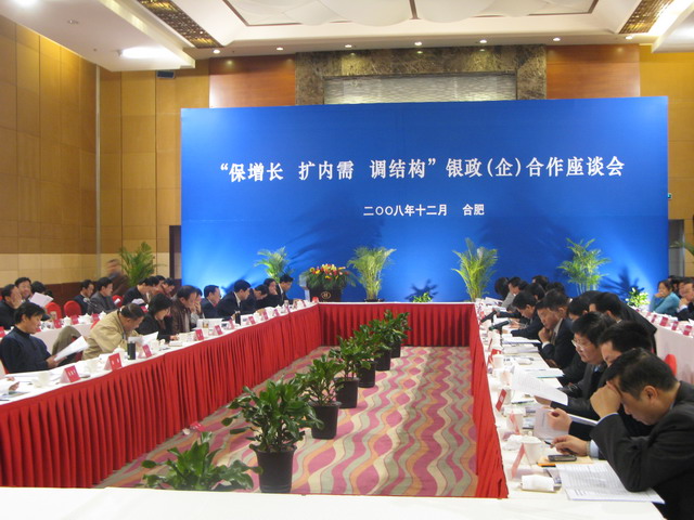 為貫徹落實(shí)中央經(jīng)濟工作會(huì )議精神,總結成功經(jīng)驗,積極應對金融危機挑戰,進(jìn)一步支持安徽經(jīng)濟社會(huì )又好又快發(fā)展,國家開(kāi)發(fā)銀行安徽省分行于12月18日在合肥召開(kāi)“保增長(cháng)擴內需調結構——銀政(企)合作座談會(huì )”。集團公司總經(jīng)理陳軍應邀參加了本次會(huì )議。