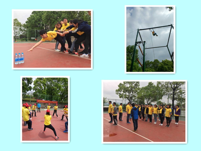 為期一天的拓展訓練內容包括“破冰起航”、“群龍取水”、“鼓動(dòng)人心”、“智力電網(wǎng)”、“高空跳桿”等活動(dòng)項目。在“群龍取水”比賽中,大家默契十足,合作精神展現的淋漓盡致,通過(guò)隊友的幫助,沖過(guò)重重阻礙,終于成功取水,比賽緊張,扣人心弦;在“鼓動(dòng)人心”比賽中,隊員們統一步調,不斷嘗試、不斷總結、不斷進(jìn)步,團隊合作精神貫穿始終;在“智力電網(wǎng)”比賽中,為了集體榮譽(yù),大家精確計算,合理謀劃,所有隊員不怕臟不怕累,都以十足的拼搏精神全力以赴,活動(dòng)場(chǎng)上口號聲、歡呼聲、吶喊聲、掌聲交織成一片;在“高空抓桿”比賽中,隊員們以最大的努力克服心里障礙、發(fā)掘自身潛力,冷靜面對、挑戰自我,深刻體會(huì )了團隊協(xié)作、信任互助和自信的重要性,承受住壓力,戰勝了困難,用汗水書(shū)寫(xiě)了弘揚五四的華彩樂(lè )章。