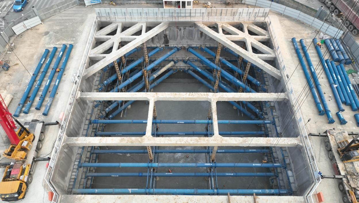 為順利推進(jìn)施工,克服工程難點(diǎn),施工前期,建投集團所屬城投公司項目辦組織監理、施工等單位采取模擬推演風(fēng)險源、優(yōu)化土方開(kāi)挖方案、組織協(xié)調工序銜接、優(yōu)化施工空間布置等措施,于3月14日正式開(kāi)始土方開(kāi)挖。在遵循 “先撐后挖、水平分段、豎向分層”原則及“分層、分步、對稱(chēng)、平衡、限時(shí)”要點(diǎn)的基礎上,保障基坑施工安全的同時(shí),于4月19日順利完成墊層澆筑,為后續主體結構施工創(chuàng )造良好的條件。